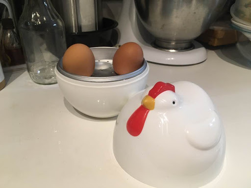 The ramen pack already comes with an organic soy sauce broth but I always add a smidgen more. The eggs I add are organic and have no added hormones. I boil them in this chicken microwave egg boiler for only 8 minutes. You add cool water to the boiler in the base underneath the aluminum holder. You cover the the aluminum with the chicken top and nothing explodes, lol. They never over cook/boil. I cool them off, then peel and voi la.